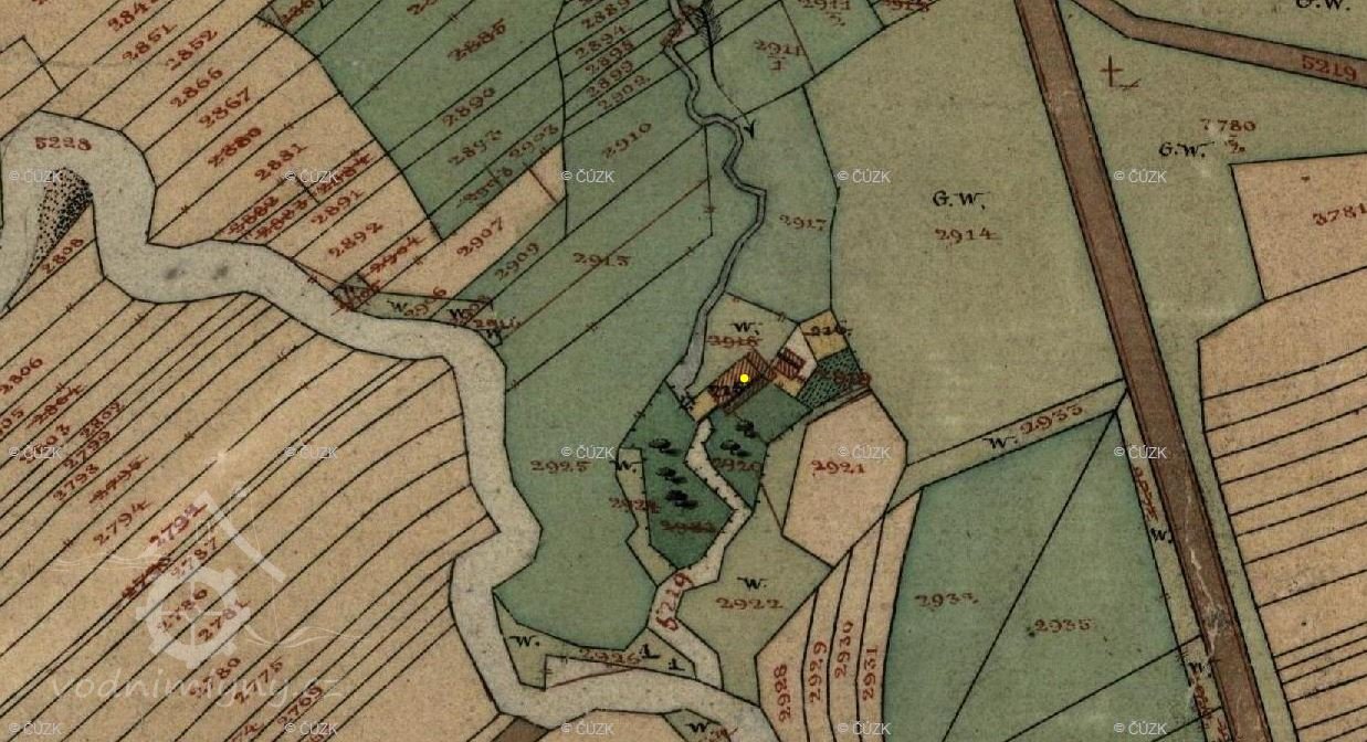 Popis1930: 1 kolo na svrchní vodu, hltnost 0,115 m3/s, spád 3,55 m, výkon 3,5 HP