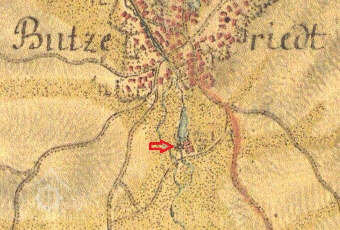 Menší mlýn, na který přiléhají dvě vedlejší stavby. Vypadá obydlen avšak ne příliš udržovaný.