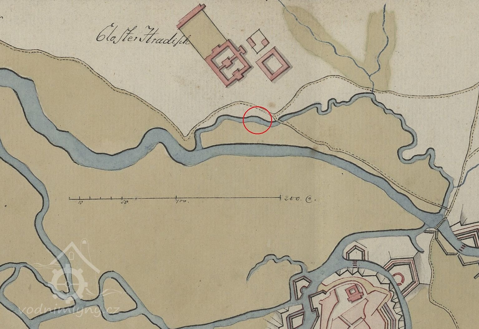 Nový spor vypukl r. 1633-1634 v souvislosti se stavbou nového mlýnského náhonu a splavu v blízkosti klášterního mlýna opatem Maxmiliánem Pracherem, kdy byl také opravován mlýn. Značné množství písemností, které se nám z tohoto sporu dochovalo dává dodnes možnost usuzovat, že se jednalo o spor velmi závažný, jenž byl vyřešen až někdy koncem 17. století a to ještě ne tak, jak by si to městská rada a pevnostní velitel města představovali. Obratnou politikou se opatům kláštera podařilo udržet stav z r. 1634 a to v podstatě až do zrušení mlýna.