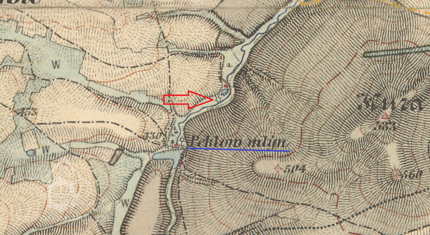 Vznikl po pol. 19.stol., možná na místě staršího zaniklého mlýna.