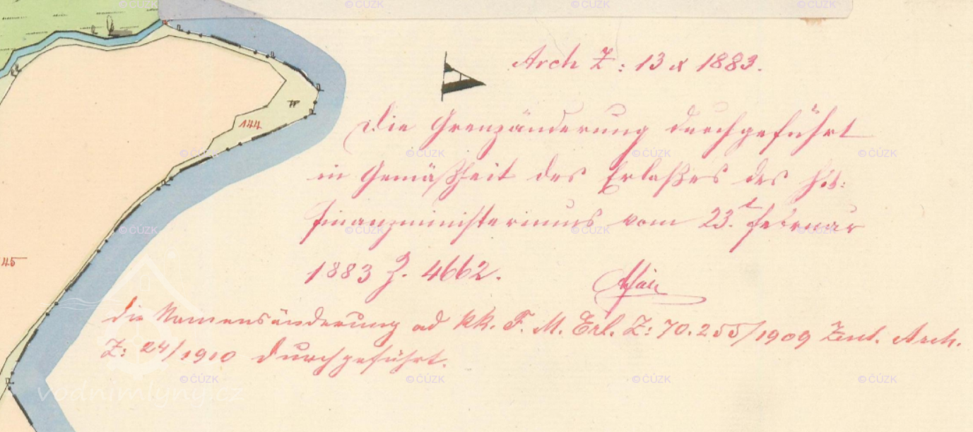 23.2.1883 provedeny změny katastrálních hranic, sloučeny části mlýnského areálu na katastrech Nového Sedla a Ervěnic, celek připojen k Ervěnicím