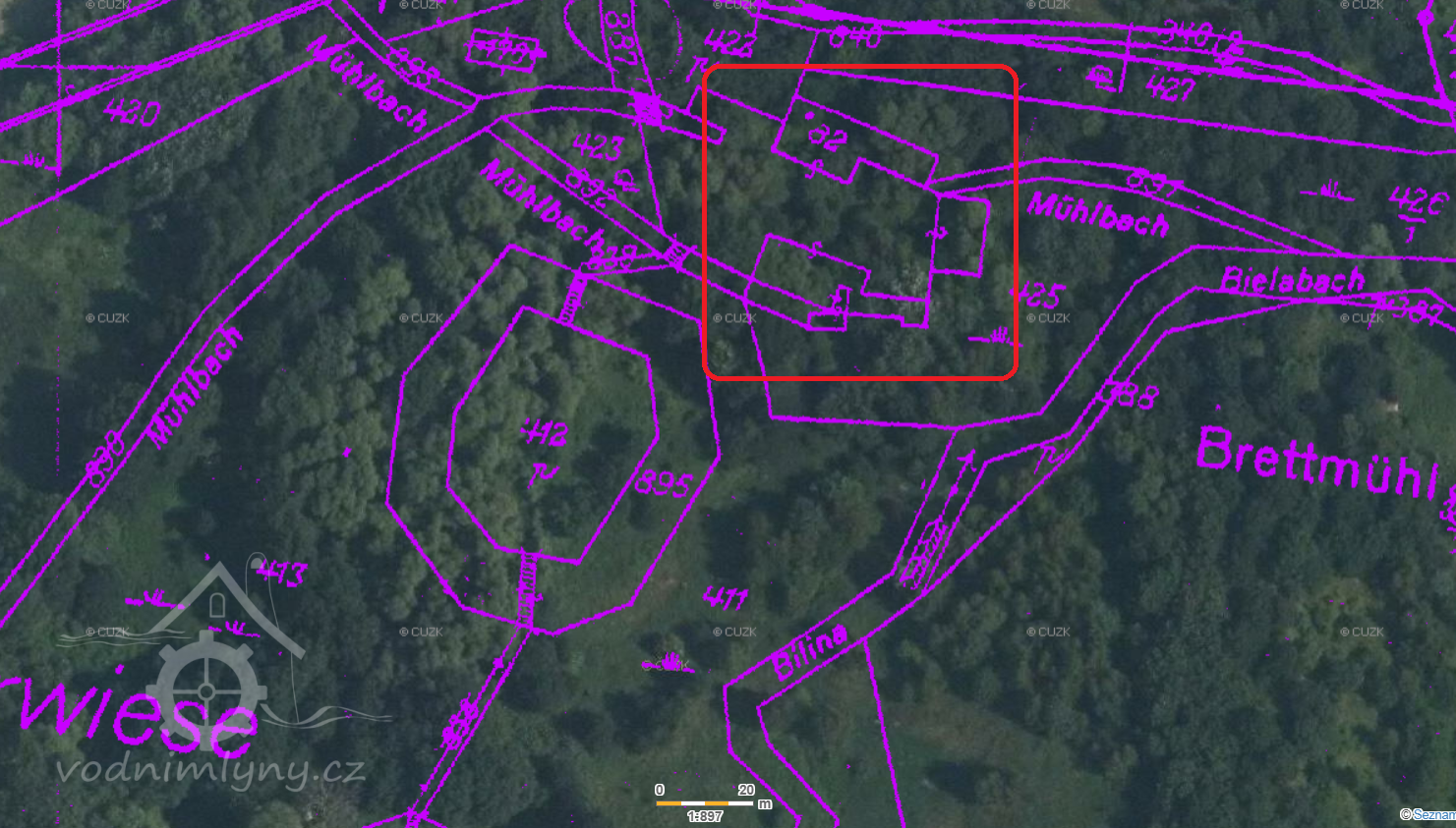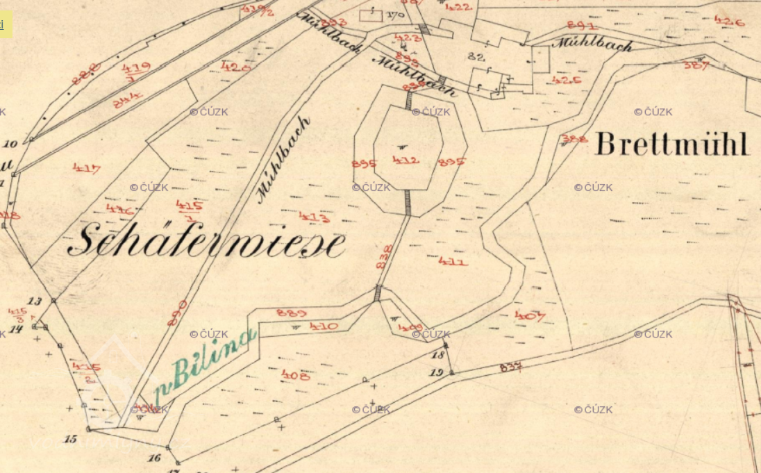 Popis1930: 2 kola na svrchní vodu, hltnost 0,145 m3/s, spád 3,6 m, výkon 4,5 HP