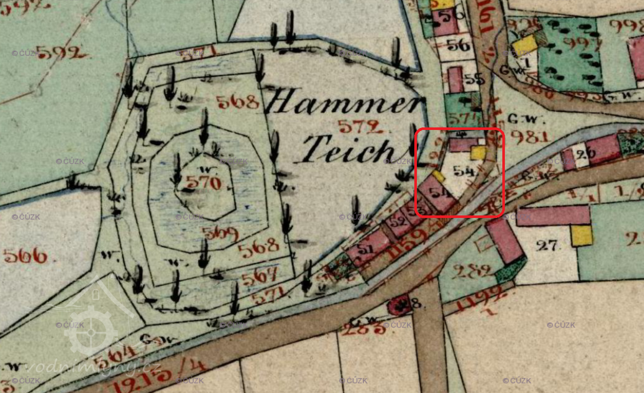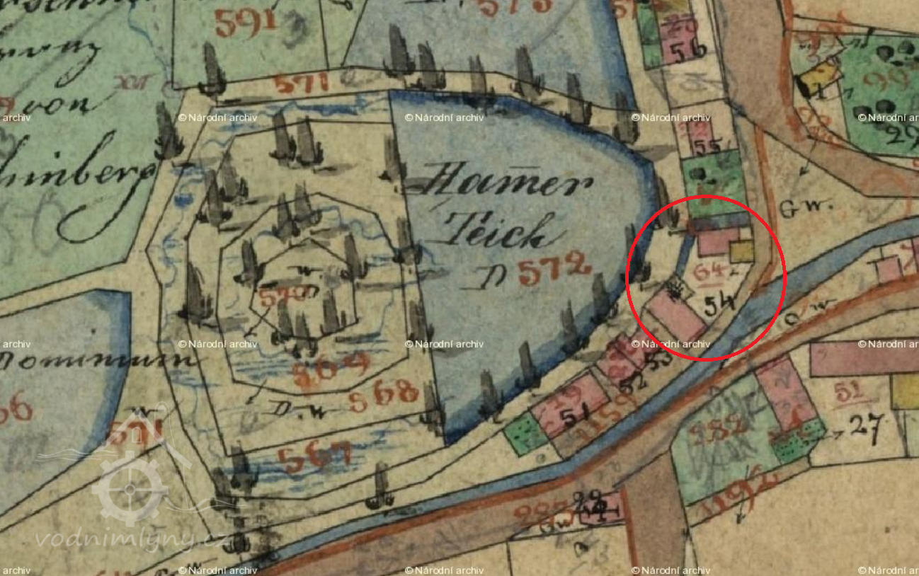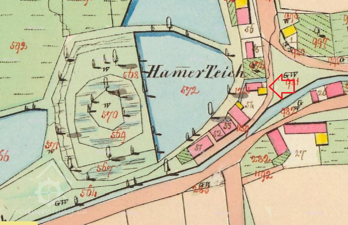 Malý mlýn pod stejnojmenným rybníkem se zbytkem vodního tvrziště, původně tedy patrně hamr, na mapě II. vojenského mapování značen zkratkou LM (netuším, jaký má význam), v roce 1930 registrován jen jako mlýn.