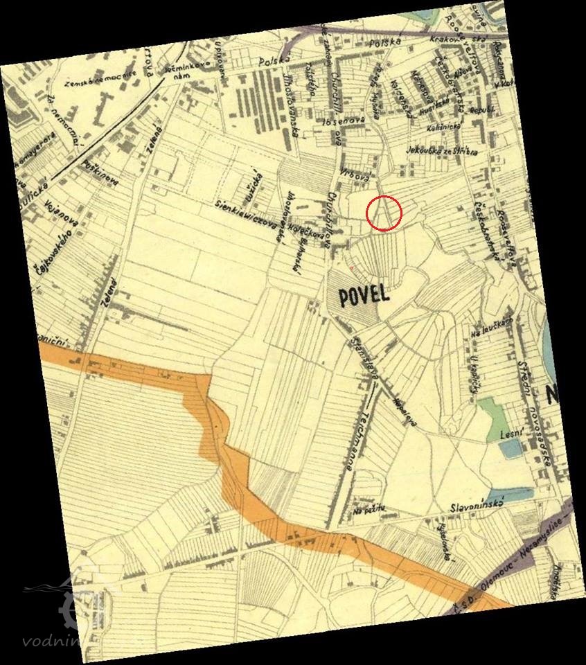 Od Neředína směrem k městu tekl v minulosti potok zvaný Povelka. Ve 13. století, kdy výstavba města pokračovala směrem k Hornímu náměstí, byl potok sveden u Litovelské brány do uměle vytvořeného řečiště (mlýnské strouhy), zvané Malá Morava na dnešní třídě Svobody. U Nového mlýna pak byl opět vyveden do řečiště, vedoucího po hranicích katastru Povlu a Nových Sadů. To je ještě dodnes patrné v ulici Josefa Mišáka, která se dříve jmenovala Na Povelce.