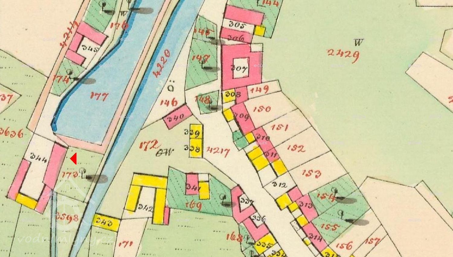 PopisZápis v VK z 10.1.1944 – vlastník Anton Slaba, turbína průtok 240 l/s, spád 4,5m, výkon 11 HP.