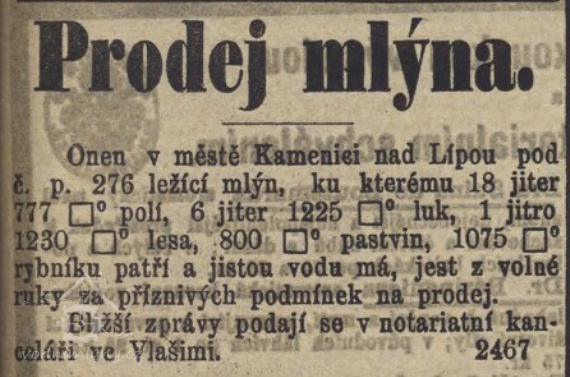 Okresní úřad obeslal majitele mlýnu aby dodali dle §23.císař.nařízení ze dne 21.června 1915 informace o svém mlýnu