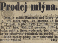 Ohlašovací list pro mlynářský podnik (výpis z obsahu)