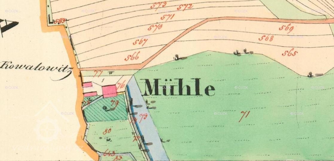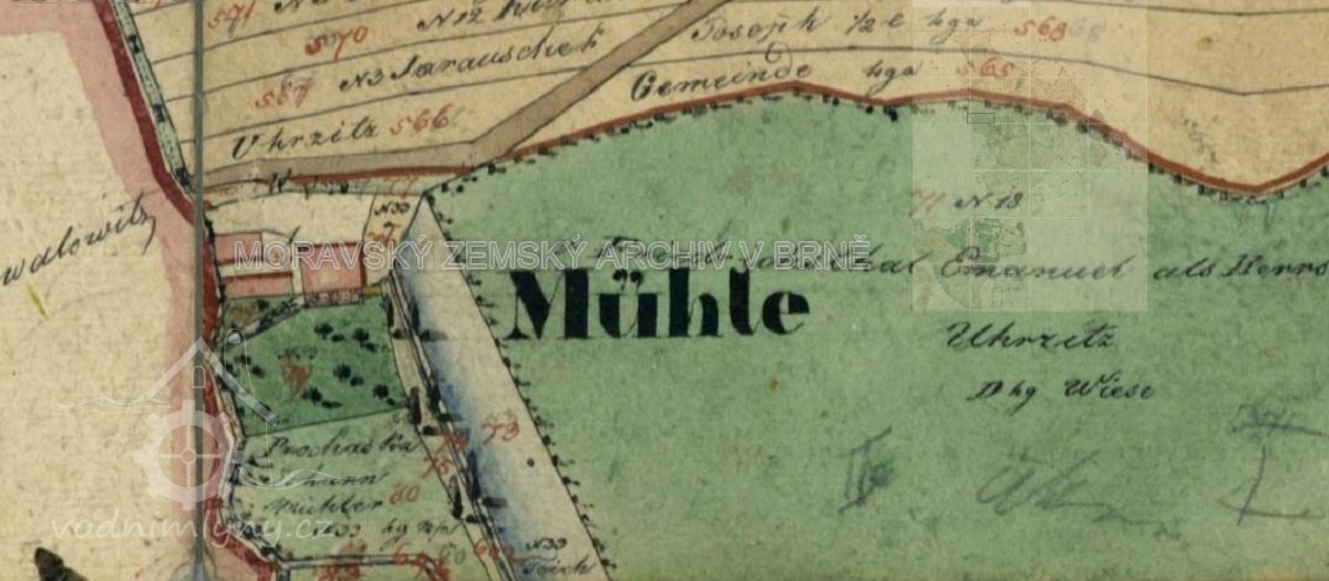 Popis1930: 1 kiolo na svrchní vodu, hltnost 0,12 m3/s, spád 4,7 m, výkon 5 HP