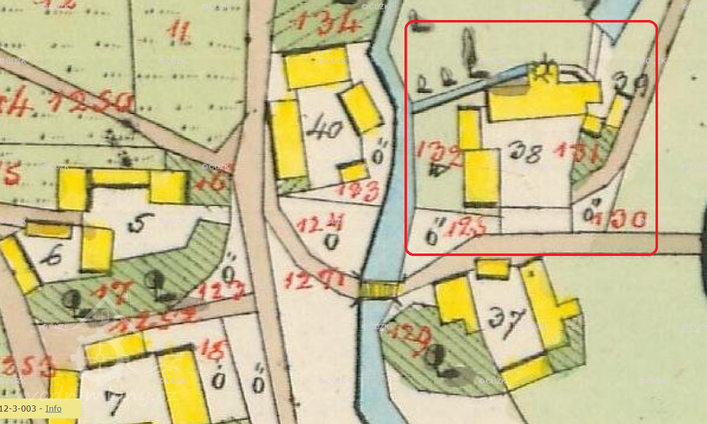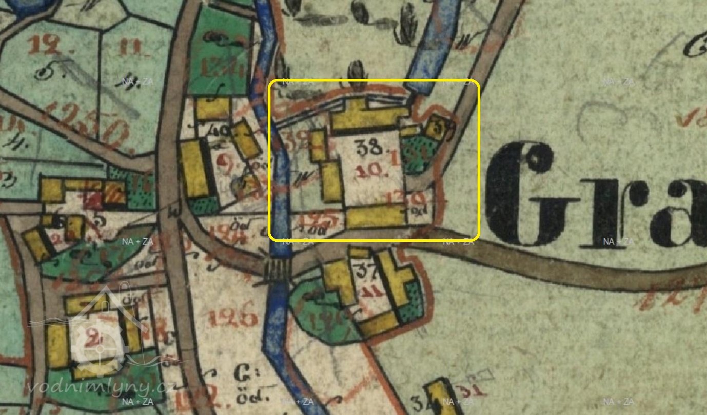 Popis1930: 1 turbína Francis, hltnost 0,14 m3/s, spád 6,5 m, výkon 8,4 HP