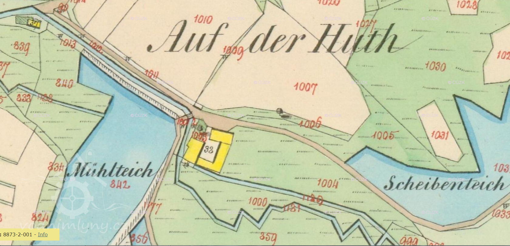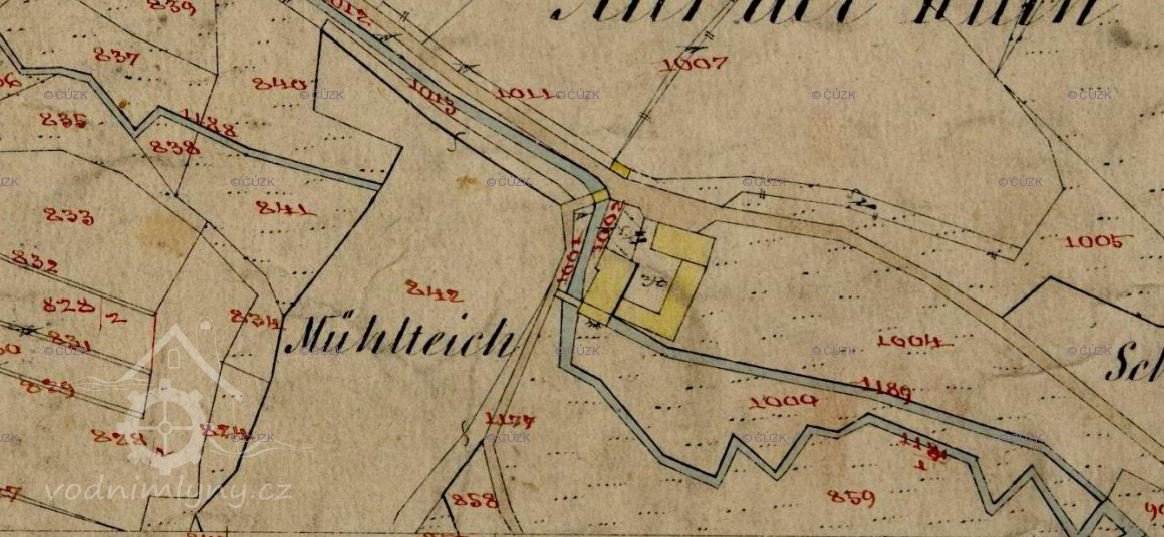 Nad mlýnem býval větší rybník s pravoúhlou hrází.