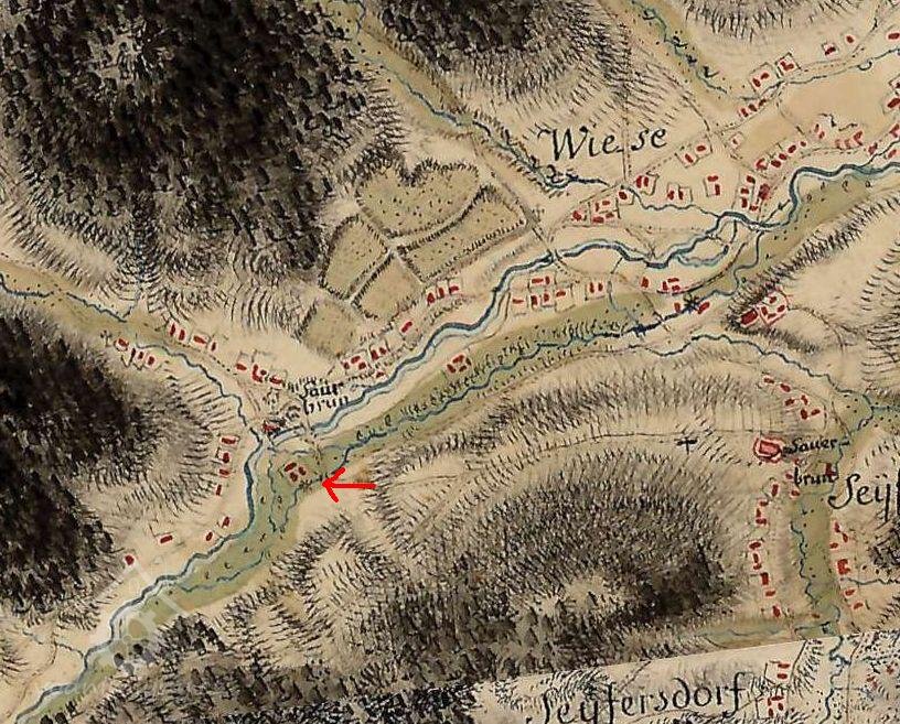 Ve 2. polovině 19. století byl mlýn zřejmě přestavěn na textilní továrnu, neboť na mapě III. vojenského mapování /1876-1878/ je v místě bývalého mlýna již vyznačen komín /značka továrny /s písmeny Tuch Fb / sukno - fabrika/. V dostupné literatuře jsem bližší údaje nenašla.