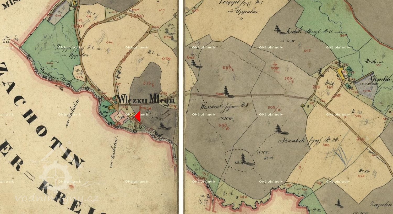 Popis1930: 2 kola na vrchní vodu, hltnost 0,05 m3/s, spád 3,62 m, výkon 3 HP