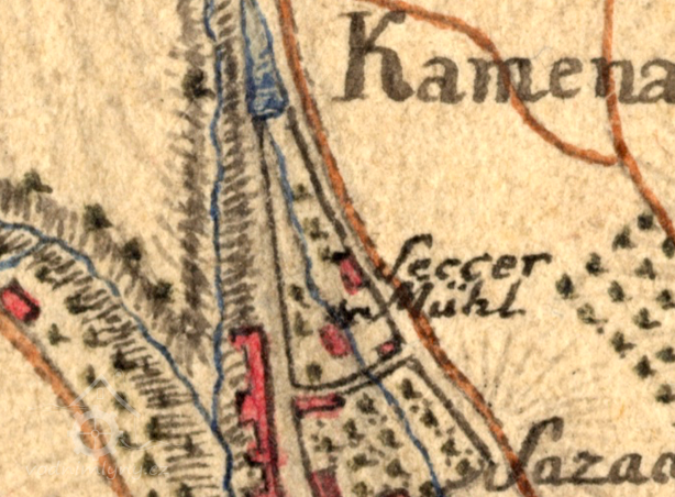 1821 - mlýn zobrazen na Kreybichově plánu Litoměřic a na Topographische charte Leitmeritz pod názvem Seccer Mühl.(Ringo)