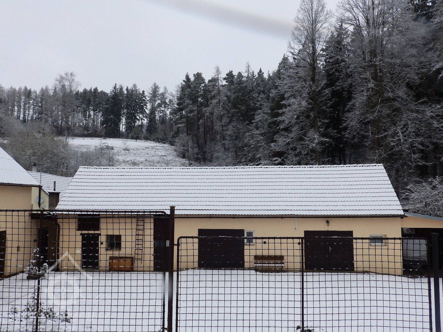 Přízemní hospodářský trakt navazuje v pravém úhlu na obytnou mlýnici, čímž vytváří otevřený dvůr.