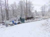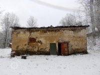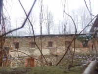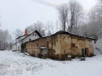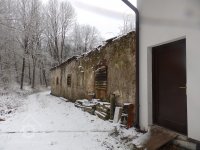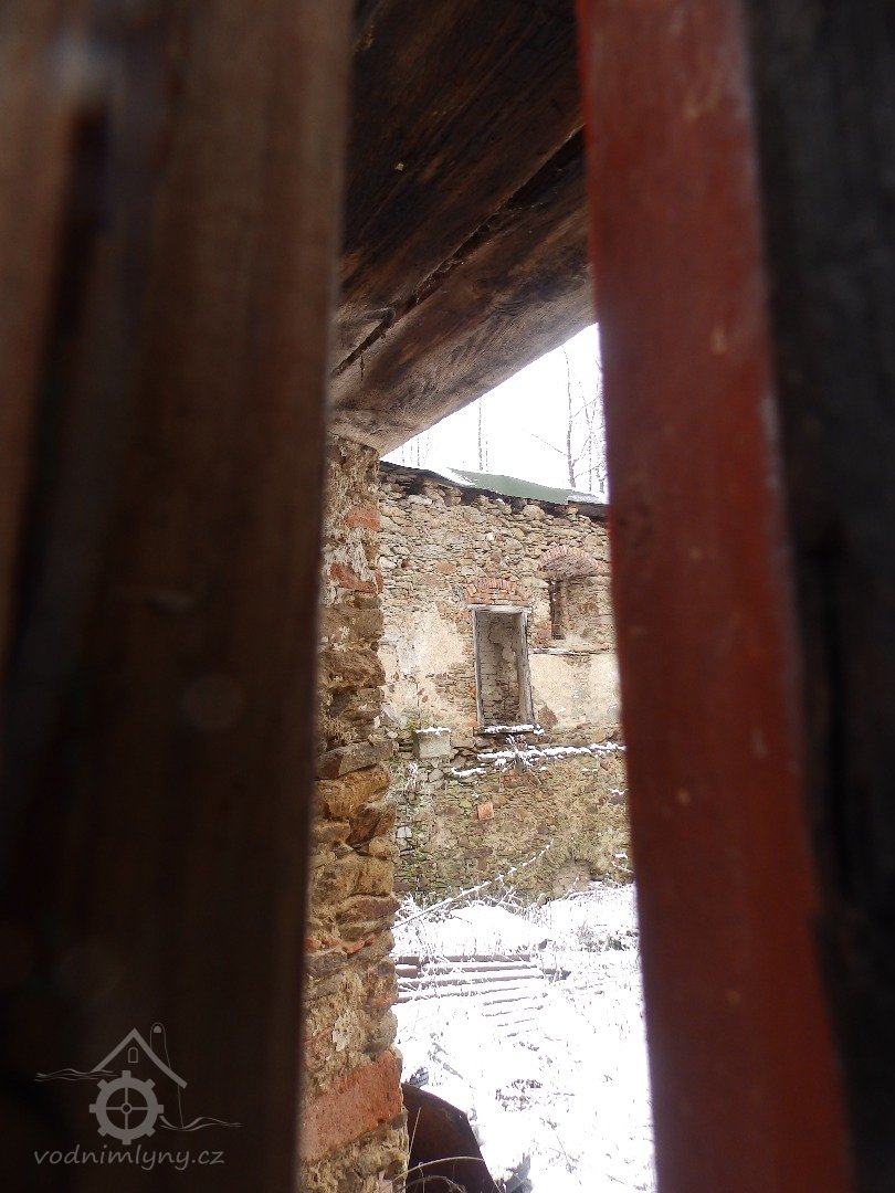 Mlýnice (dnes ve zříceninách) v jedné linii za obytnou budovou, pila a hospodářské budovy zbořeny.