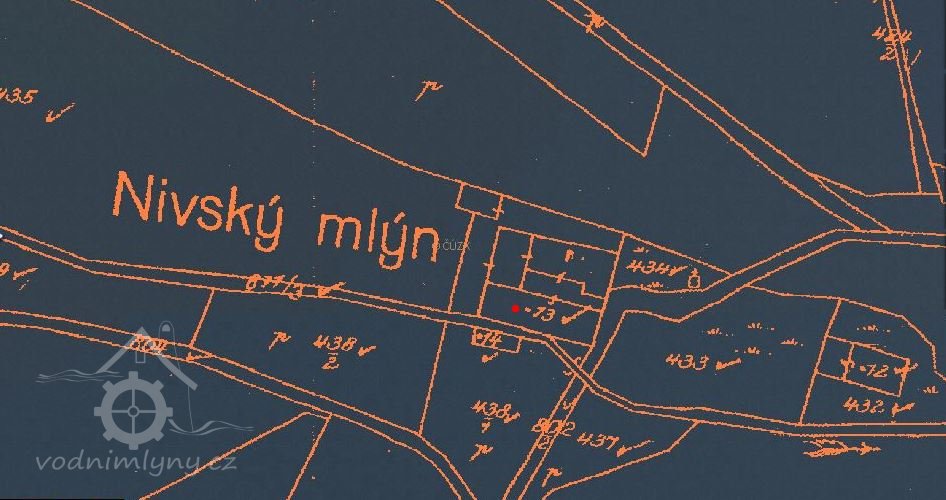 Popis1930: 3 kola na svrchní vodu, hltnost 0,4 m3/s, spád 3,3 m, výkon 11 HP