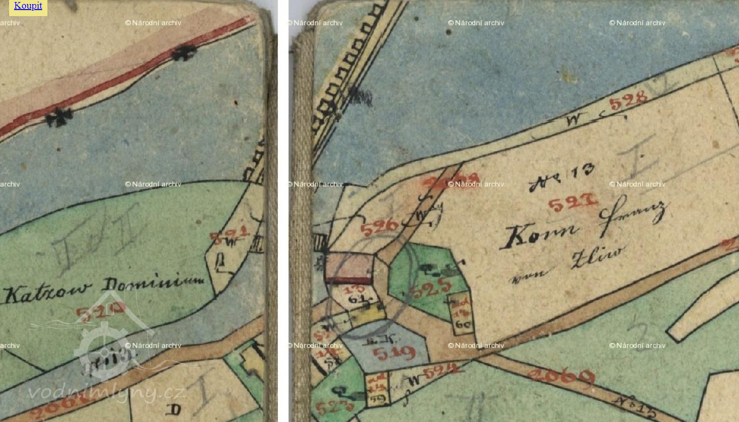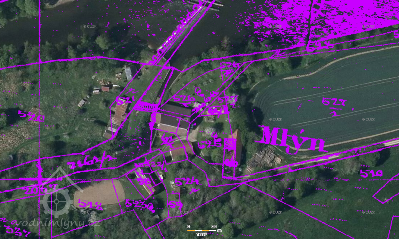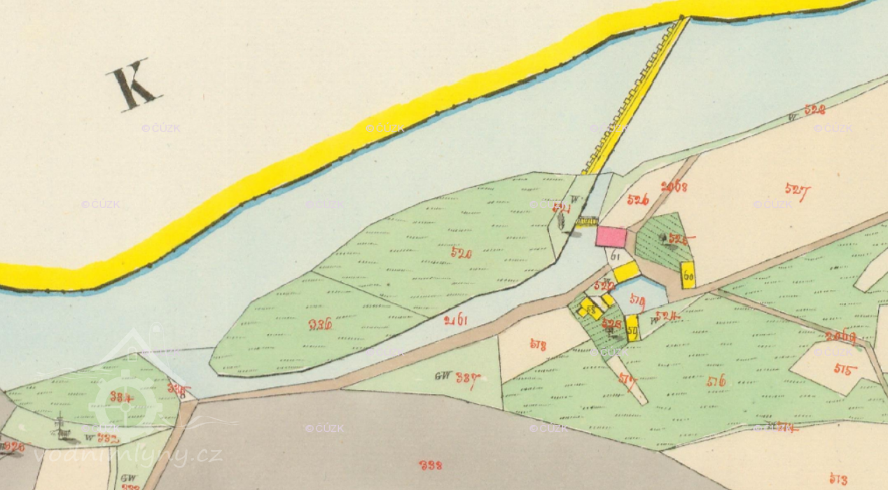 Popis1930: 1 kolo na spodní vodu,. hltnost 0,586 m3/s. spád 1,43 m, výkon 3,72 HP