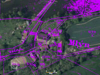 Velká obdélná obytná mlýnice, kolem seskupeny hospodářské budovy.