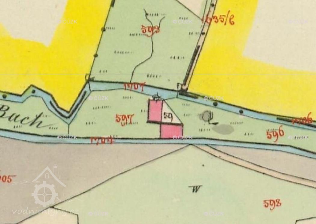 1757 Tereziánský katastr ve Rvasicích 1 mlýn