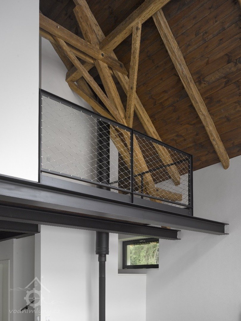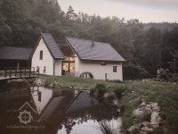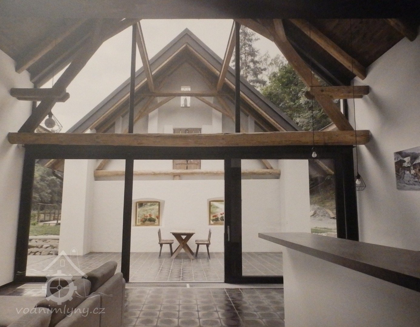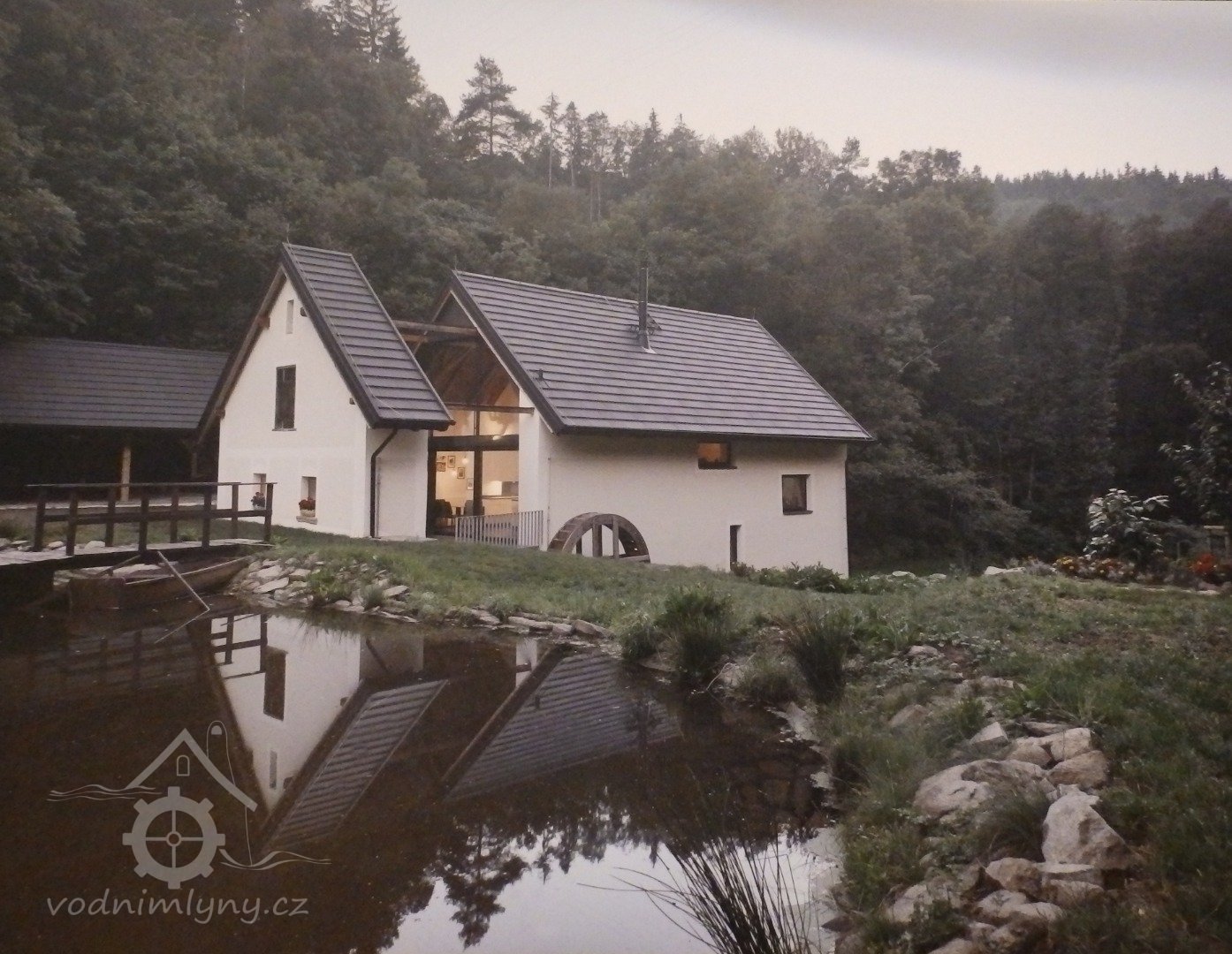 Postmoderně přestavěný historický mlýn. Realizace architektonický ateliér Stempel & Tesař.