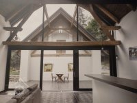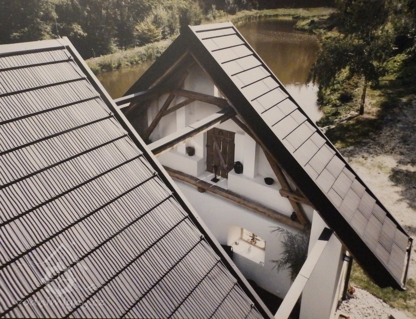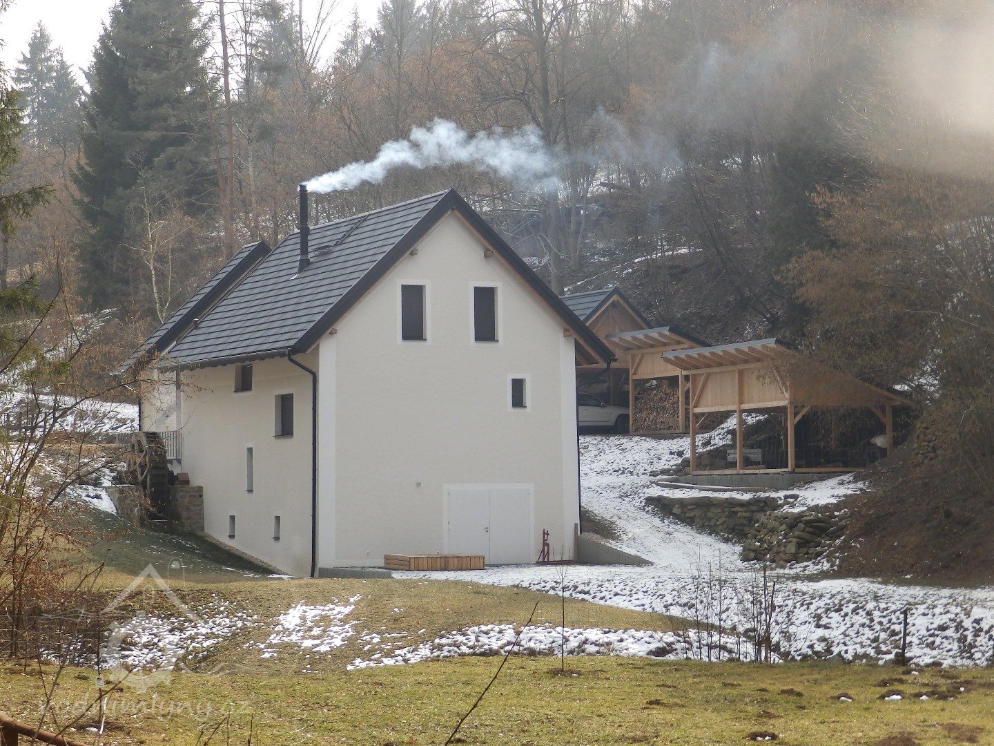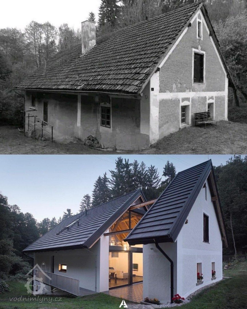 Postmoderně přestavěný historický mlýn. Realizace architektonický ateliér Stempel & Tesař.