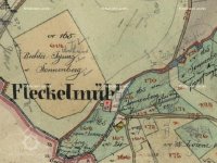 První písemná zmínka o Fleklově mlýně je v r.1579 v sobětické pozemkové knize. V 19. století byl původní mlýn přestavěn na strojní zámečnictví a kovárnu na vodní pohon. 1930 registrován opět jako mlýn a pila. Po roce 1945 byla budova zbourána.