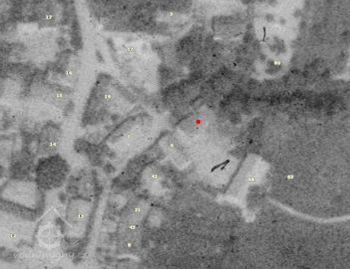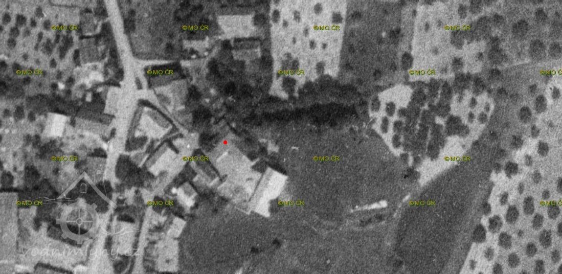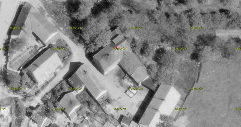 Na leteckém snímku z roku 1963 je ještě mlýn viditelný.