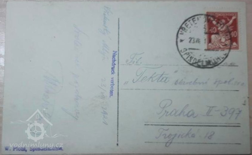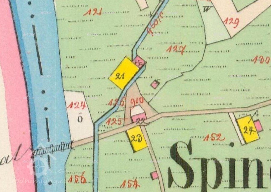 Též pod názvem Schpindelmühle (Břetenský Mlegn). Der Spindel = vřeteno.