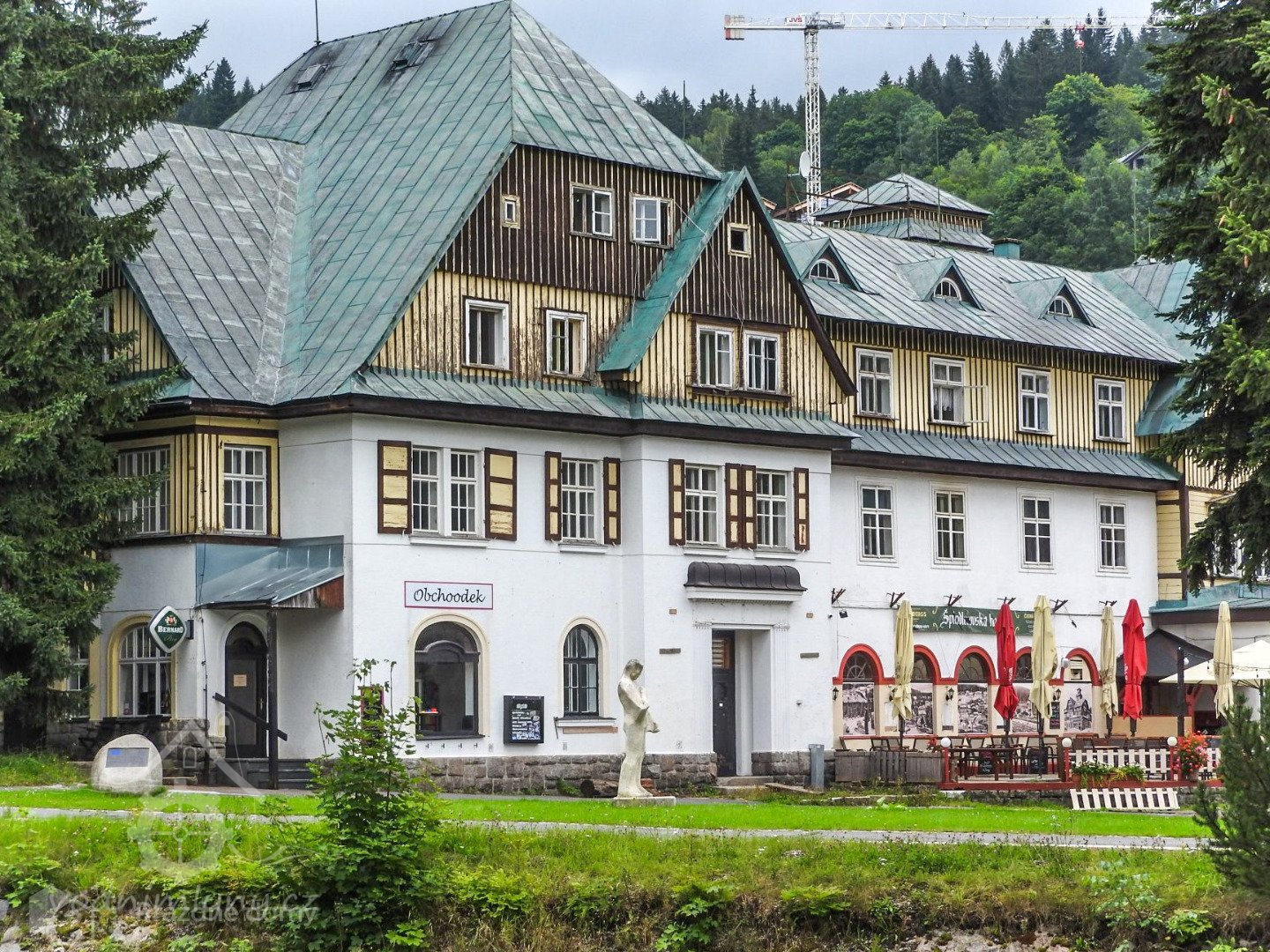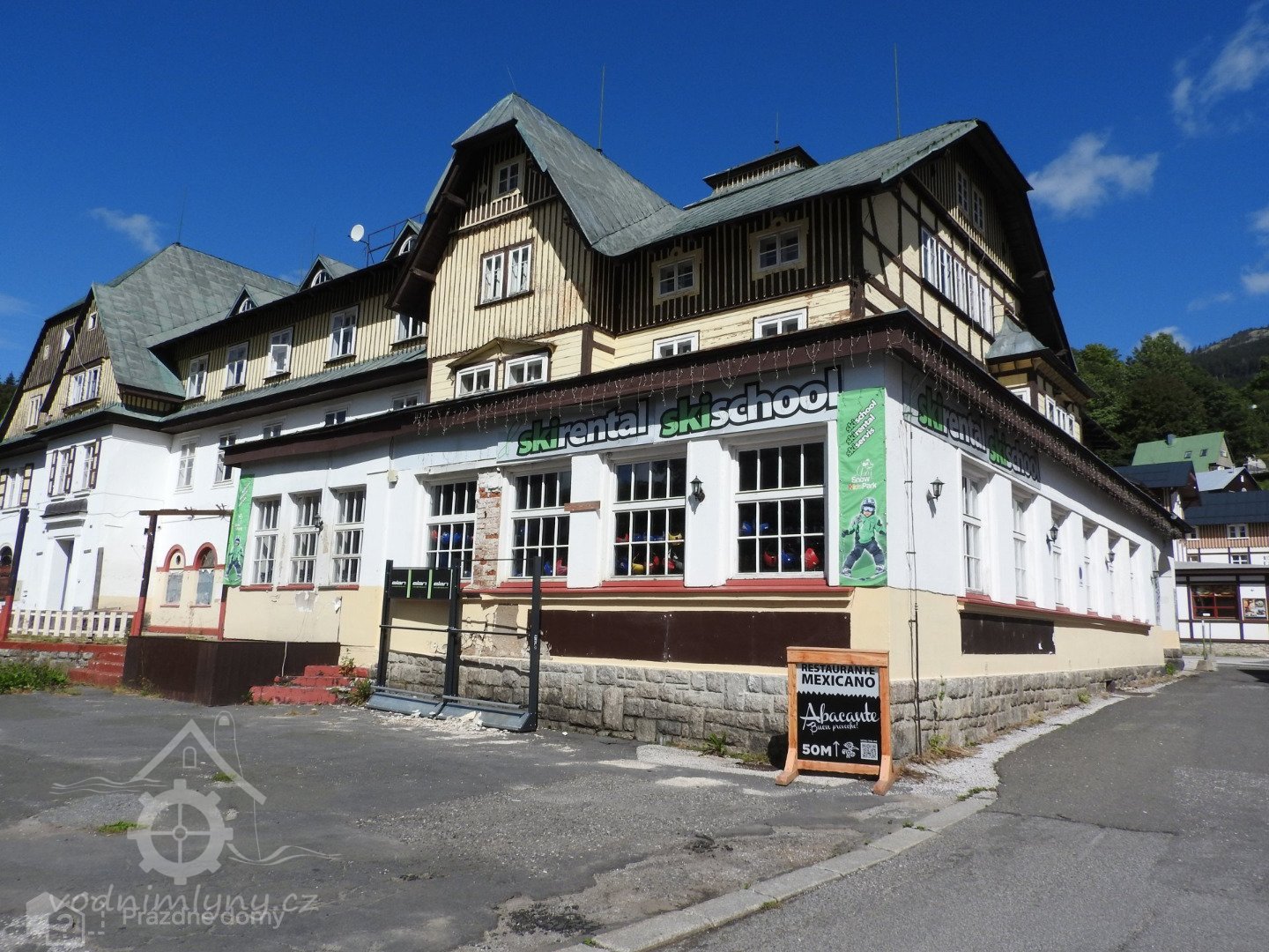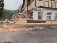 NázevBudova Pětiletky v centru Špindlerova Mlýna jde k zemi. Načerno