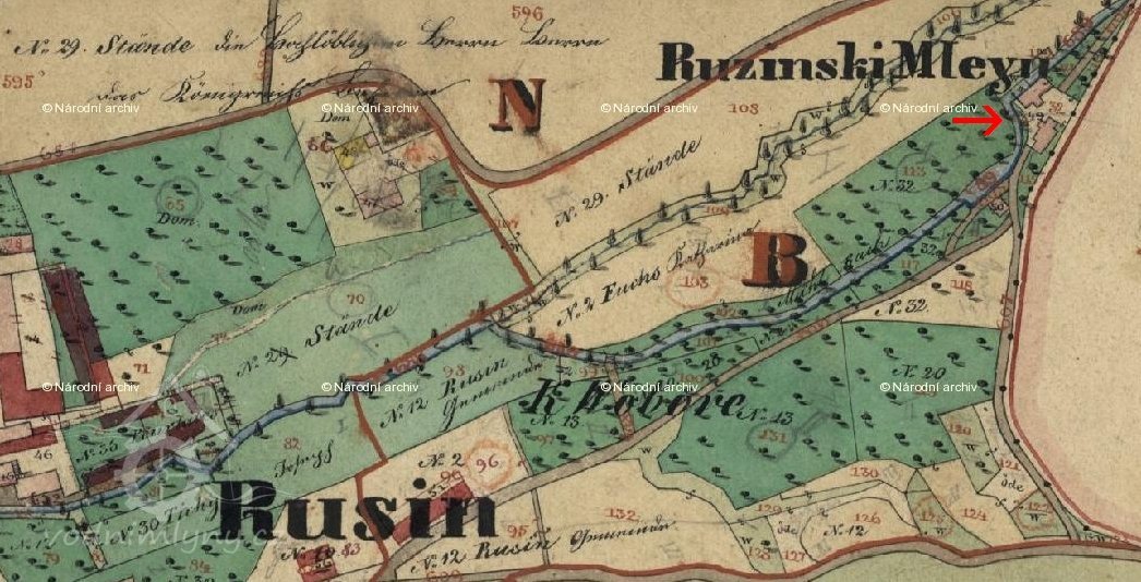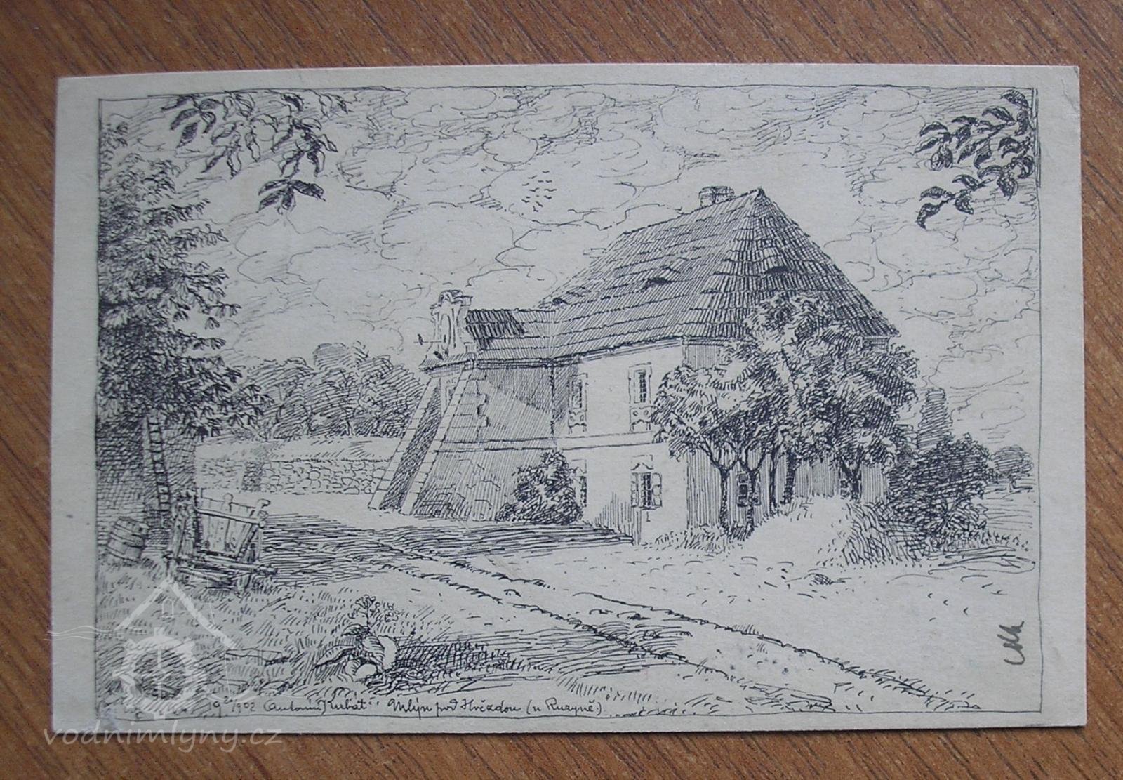 1723 mlýn zakreslen na prospektu příkopového vodovodního kanálu, vedoucího na Pražský hrad, pořízeném F. A. L. Klosem