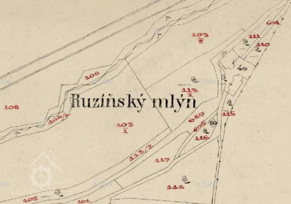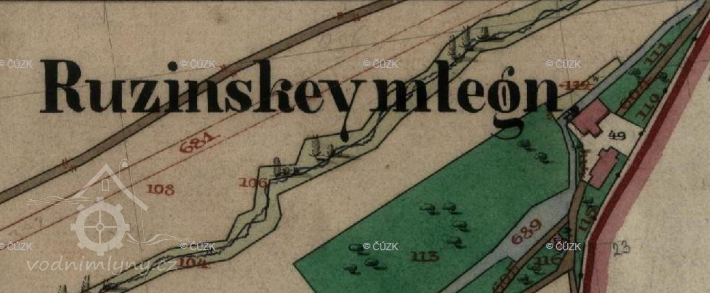 Z Litovického neboli Jalového potoka spuštěním stavidla napuštěno rameno, které naplňovalo náhon ruzyňského mlýna. V místech, kde bývalo stavidlo, vedla po zboření mlýna přes potok lávka na cestu.