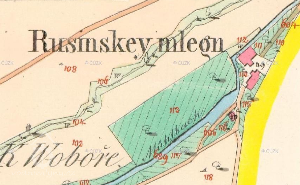 PopisV roce 1930 měl mlýn 1 kolo na vrchní vodu, hltnost 0,22 m3/s, spád 2,10 m, výkon 4,00 HP.