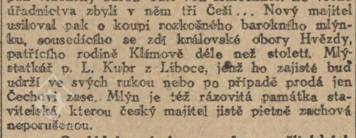 V roce 1930 byl majtelem mlýna Josef Živnůstka.