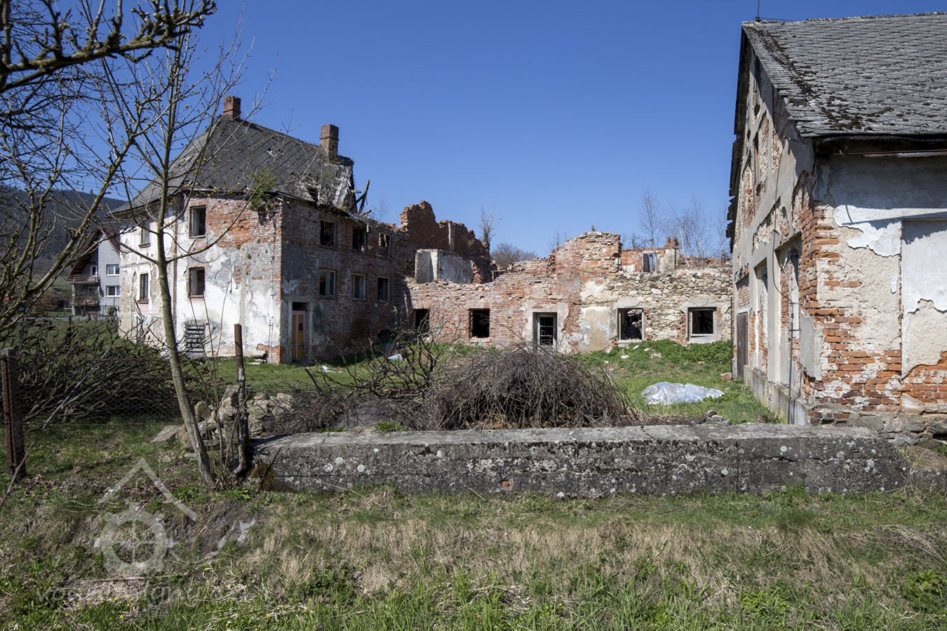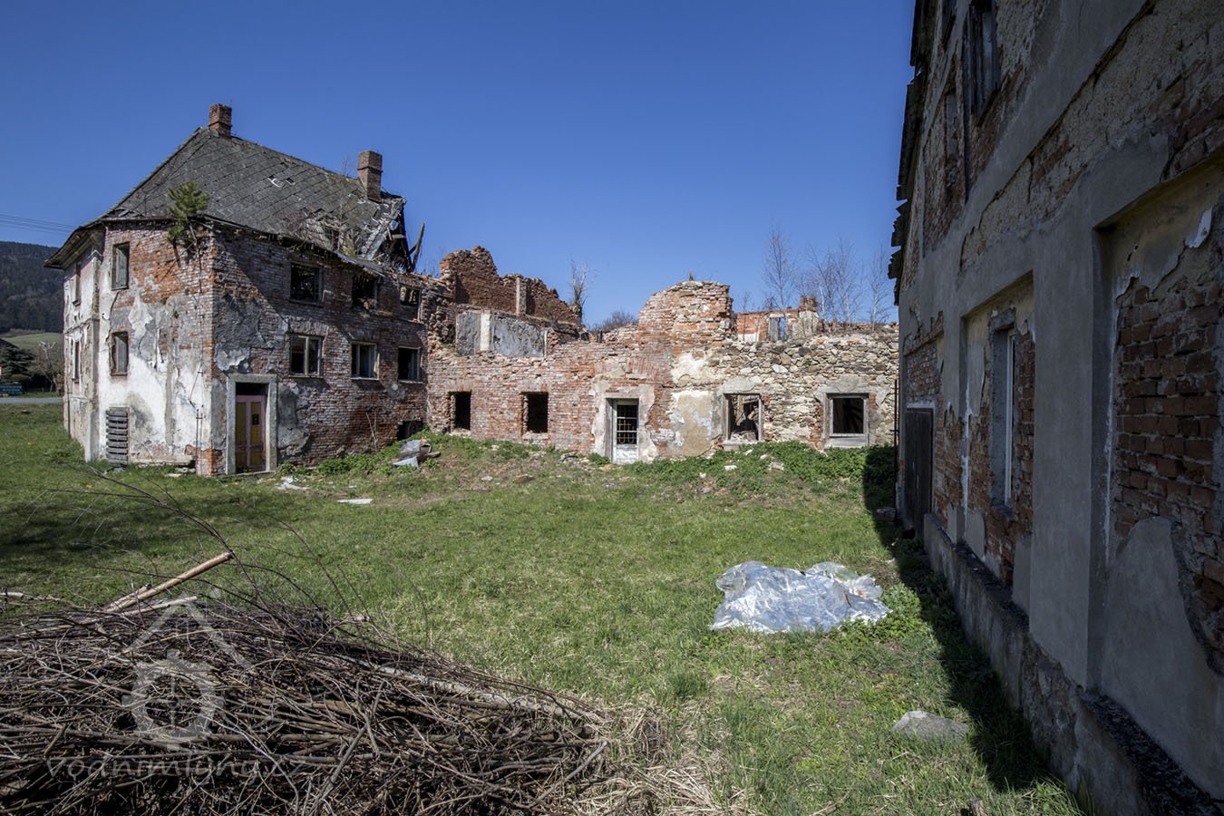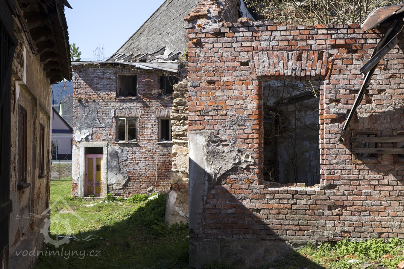 Silně zdevastovaný velký mlýn na výběžku katastru Mlýnického Dvora.