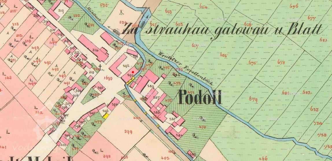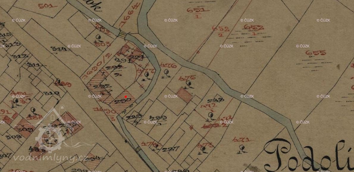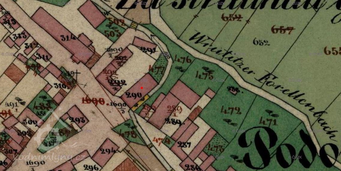 Mlýn stojí cca 300m od říčky -po regulaci a změny toku.