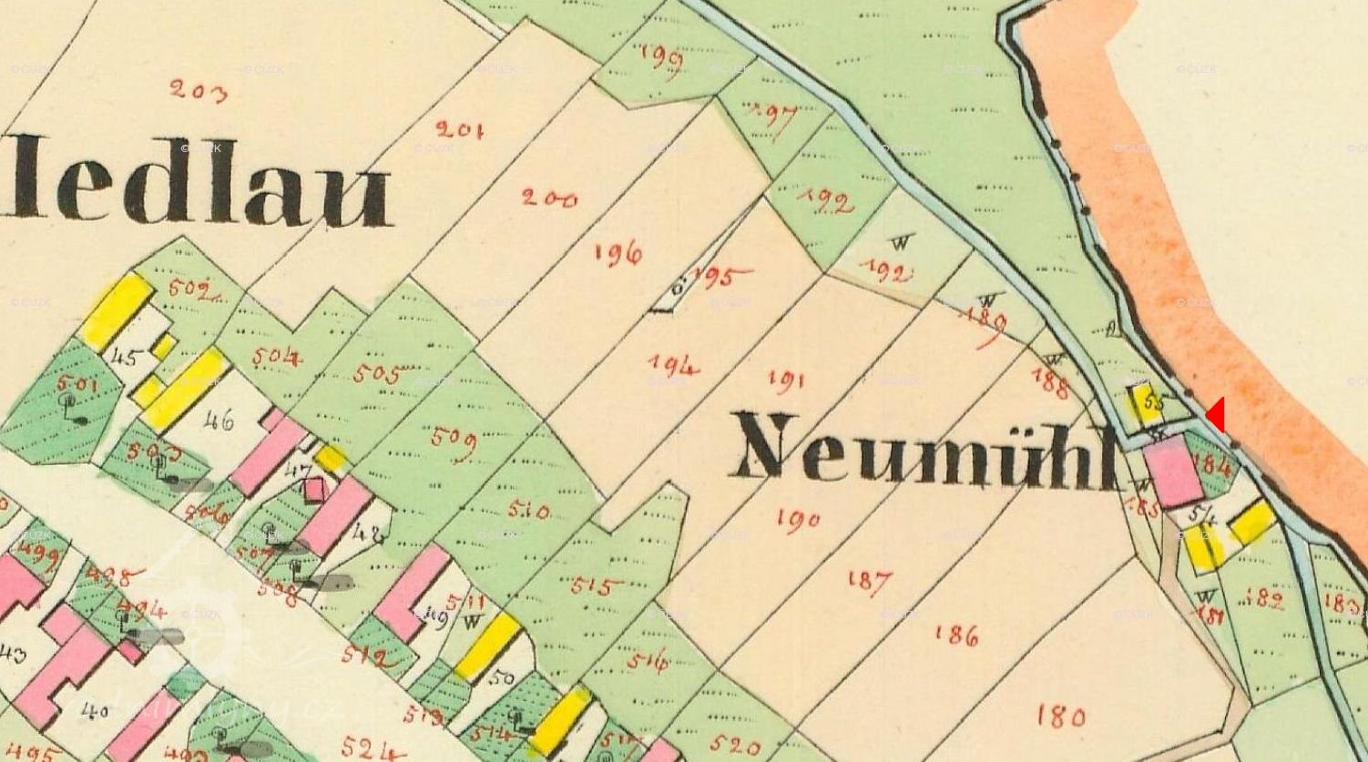 Vraťme se však k počátkům mlýnů. V úvodu knihy jsme psali o tom, že už za Přemysla Otakara II. před r.1278 existoval mlýn při ústí Jedlovského potoka do řeky Jihlavy (později zvaný Pekárkův, na kraji Dvorců; ještě v době německé okupace to byl mlýn s přikázaným mletím pro Mirošov a Jedlov, po válce zrušený). R.1390 se uvádí na arcibiskupském řečickém panství 28 mlýnů (3 v Rychnově, 2 v Dolní Cerekvi aj.), navozuje to myšlenku, proč by nemohl v následující době vzniknout i mlýn v Mirošově, jehož dlouhou hranici tvořil právě Jedlovský potok.