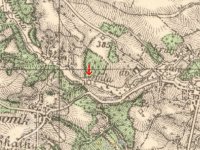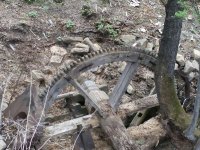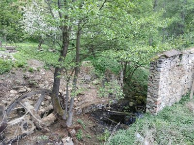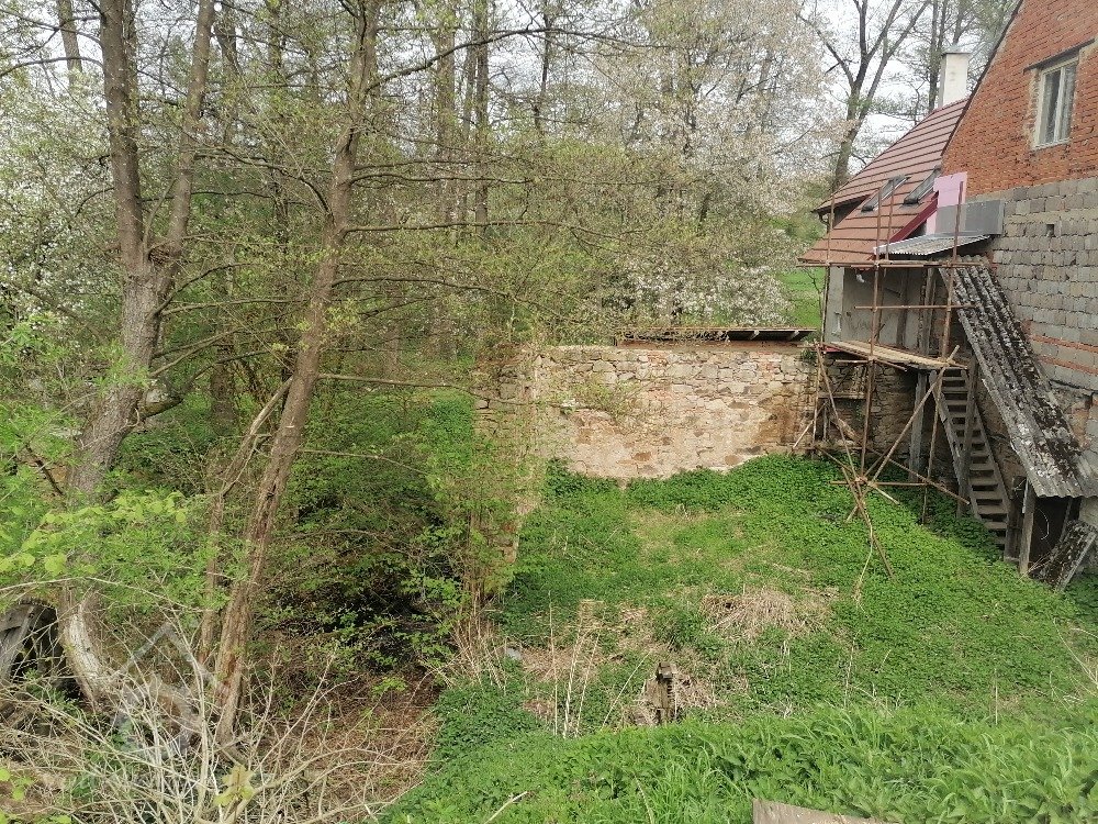 Pozůstatky pily u bývalého mlýna. Mlýn se dříve jmenoval Šlesingerův. Rodina Šlesinger nechala zbudovat i kamenný kříž u cesty v r. 1909.