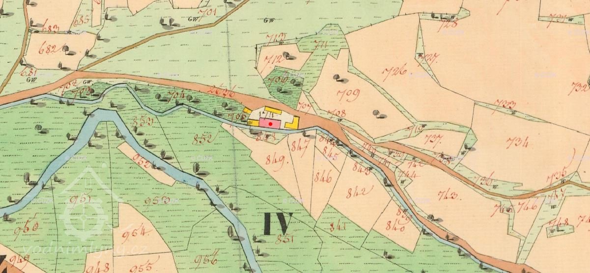 Mlýn se nachází na okraji obce u stará silnice z Vizovic.