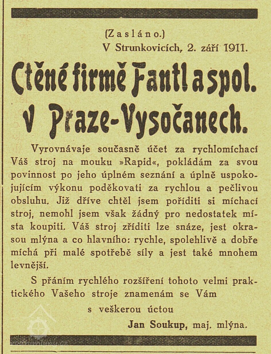 Jan Soukup předal mlýn synu Janovi II. v roce 1910. Nový mlynář instaloval kašnovou horizontální Francisovu turbínu a v roce 1919 rozšířil své elektrické zařízení k osvětlení celého městyse. Pilu zrušil v roce 1921