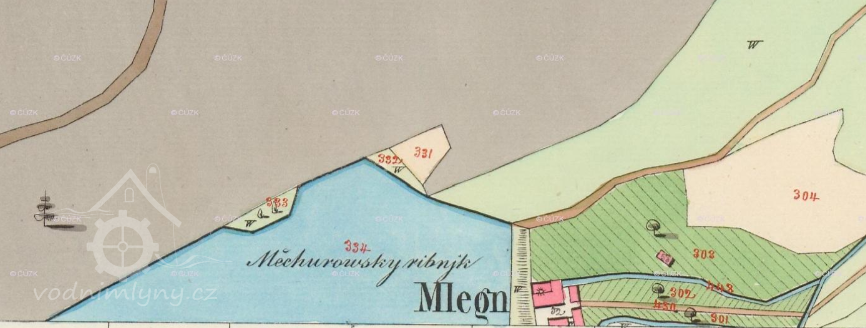 První faktická zmínka o mlýnu - „Mlynář–nájemce Matouš Měchura odešel tohoto roku z Malého mlejna pod Chejnicema do Mlejna pod Chotčí“.