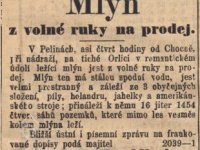 2.5.1869 Josef Kaplan, mlýn nabízen k prodeji