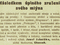- Zánik mlynářské živnosti