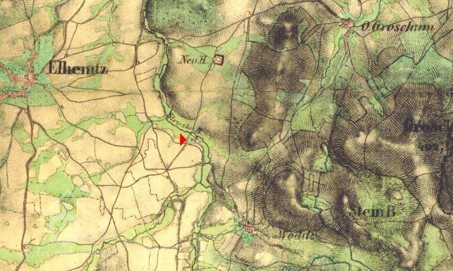 Popis1930: 1 kolo na svrchní vodu, hltnost 0,121 m3/s, spád 4,5 m, 3 HP