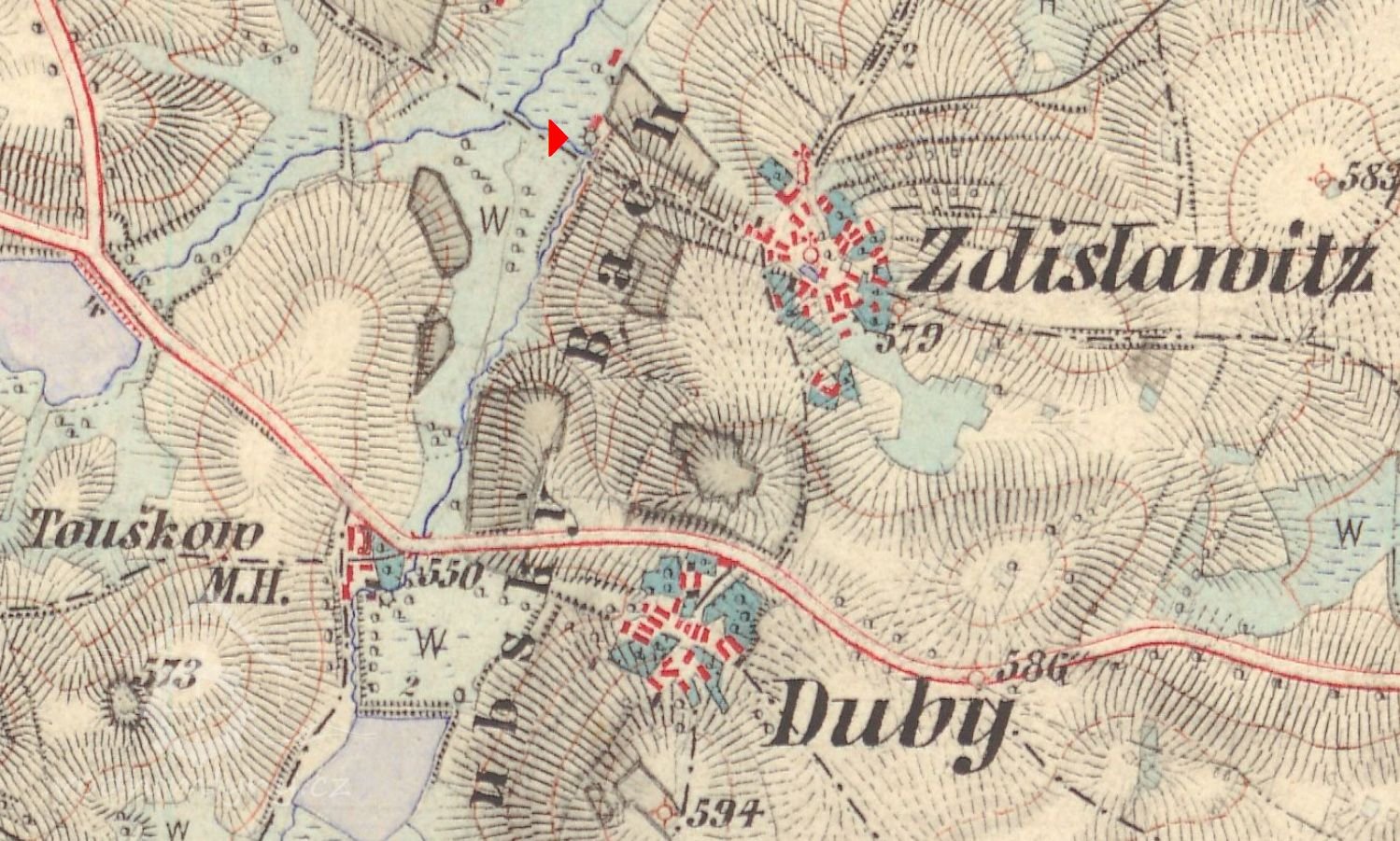 SEZNAM A MAPA VODNÍCH DĚL REPUBLIKY ČESKOSLOVENSKÉ Stav koncem roku 1930, Sešit 3, V Praze 1932 Okresní finanční ředitelství Čáslav/Důchodkový kontrolní úřad Humpolec Název toku: Dubský potok Obec, čp. : Zdislavice Podnikatel: Rud. Kulík Druh živnosti: mlýn a šindelka Počet a druh vodních motorů: 1 kolo na svrchní vodu Normální výkon v ks: 2,5