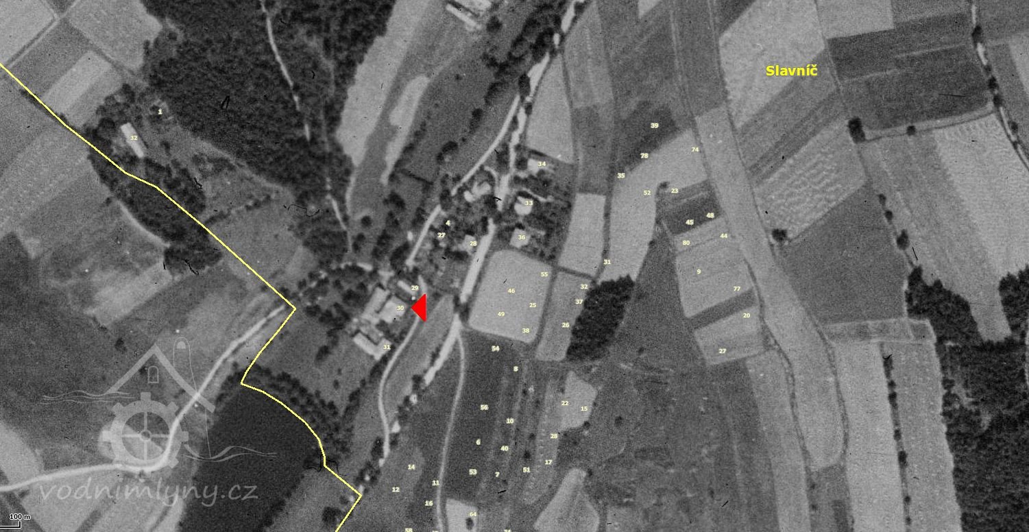 Na konci jedné z místních komunikací, pod Slavníčským rybníkem v obci Slavníč, stojí poměrně velké budovy stavení, kde v minulosti býval i mlýn. Vznik mlýna se nepodařilo časově vymezit a i údaje ve vodní knize bývalého okresu Humpolec jsou kusé. V seznamech vodních děl z r.1932 je mlýn uveden se šindelkou. V současnosti jsou budovy mlýna po částečné opravě a mlýn je realitní kanceláří z Herálce nabízen k prodeji.