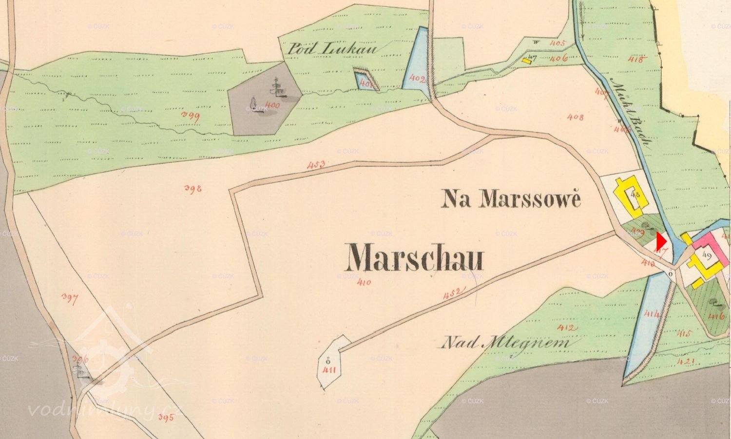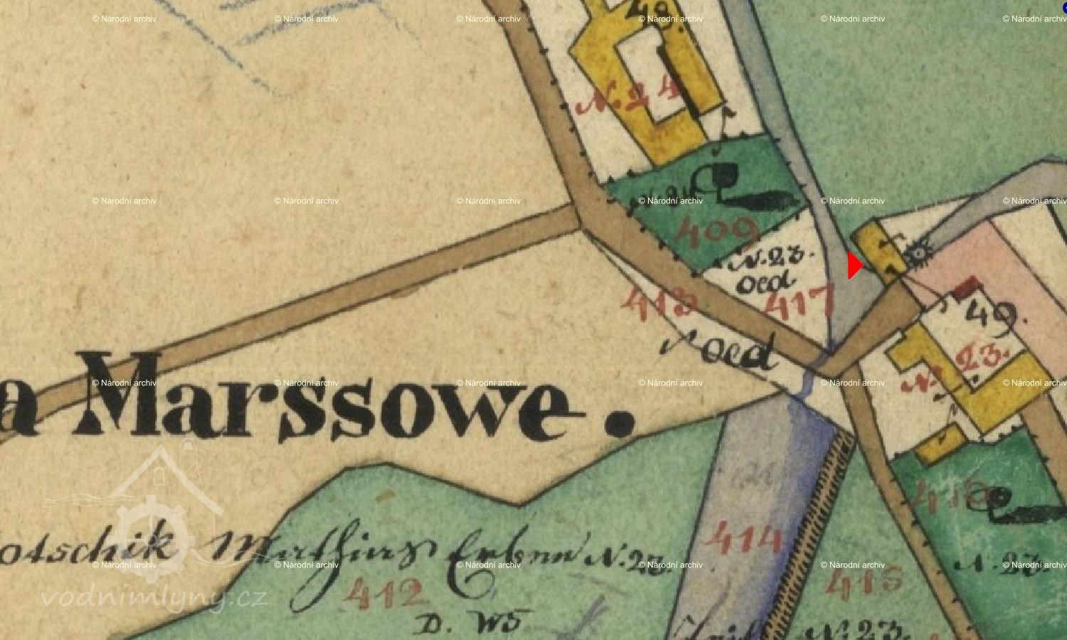 Majitel mlýna čp.23 má právo táhnouti vodu dle potřeby z Maršovského rybníka – podle vyvazovacího protokolu z 25.11.1870 a sice pokud toto připouští tzv. servilní pauza.