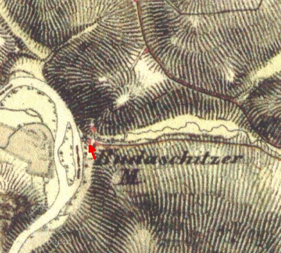 Tento mlýn je zobrazen na mapě Stabilního katastru-