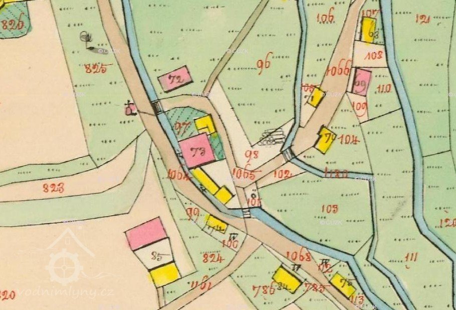 Nový mlýn je datován od roku 1855. Zachován je zde i zmiňovaný křížek naproti mlýnu.