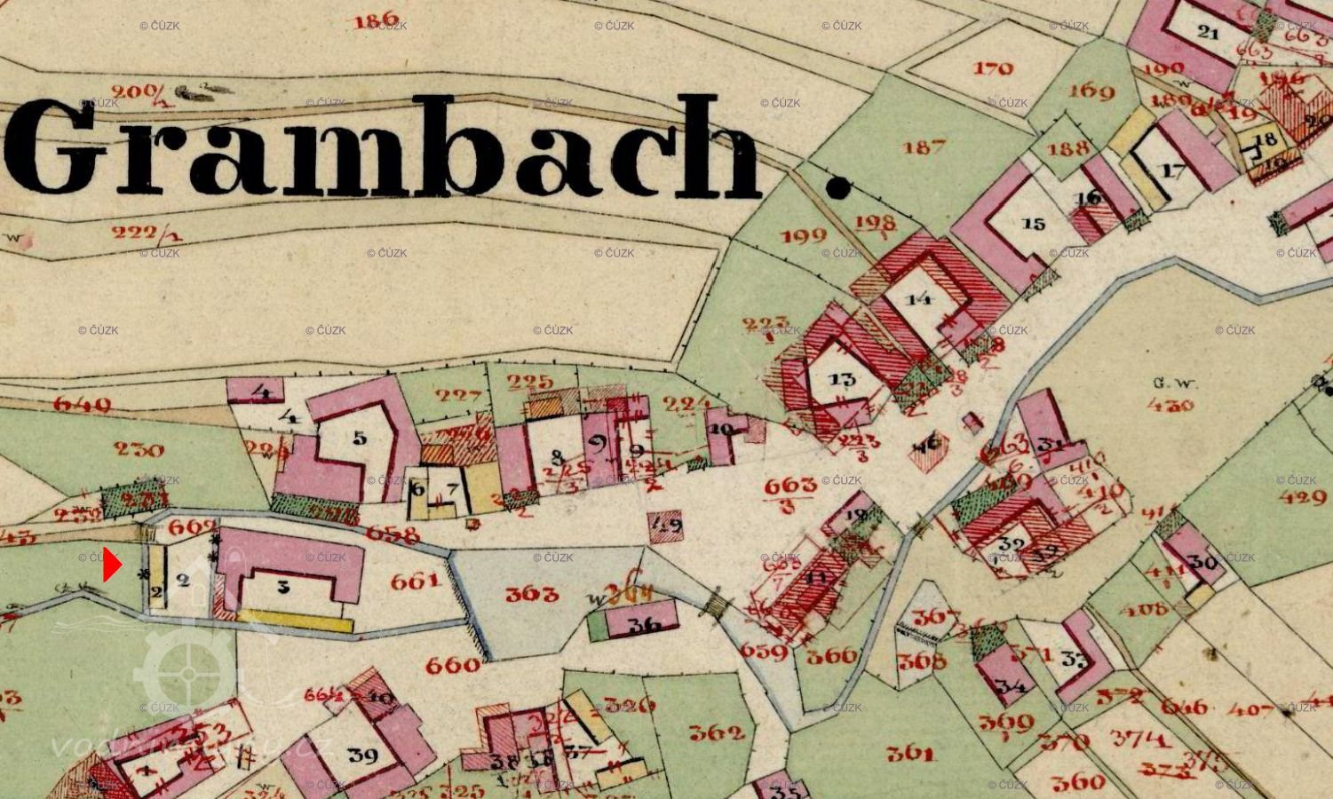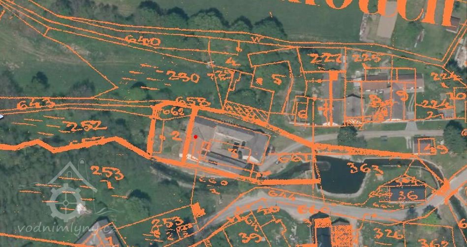 Popis1930: 4 kola na svrchní vodu, hltnost 0,078 m3/s, spád 3,45 m, výkon 9 HP