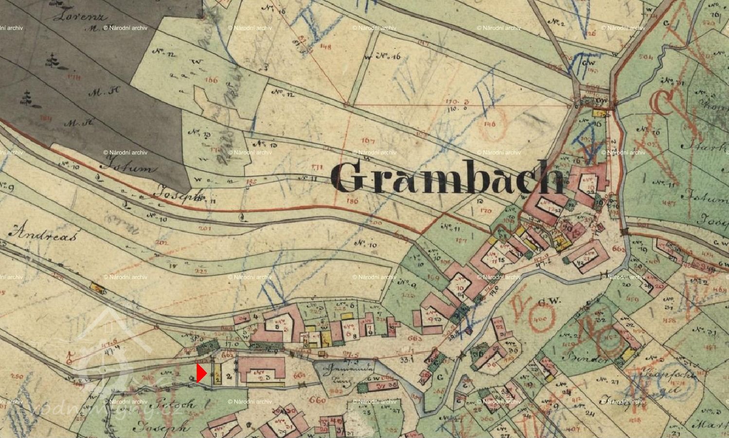 Asi 2 km severně od Nové Bystřice leží obec Potočná (dříve Krampachy, něm. Grambach). Budova penziónu Veselý mlýn bývala v minulosti skutečně mlýnem. Matrikami jsou doloženi mlynáři Starkové již v první polovině 18. století (starší matriky nejsou dobře čitelné). V seznamech vodních děl z r. 1932 je uváděn mlýn s pilou. V současnosti je mlýn částečně upraven jako penzion.